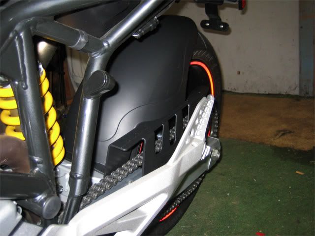他の620オーナーの方も「色気の感じられない造形」と言ってましたが、たしかにあまり格好良くはないですね。尻尾のとがっているところは丸い方が好みです。ま、これでシート下、リアサスペンション周りの泥はねから解放されるかと思うと嬉しいですけどね。